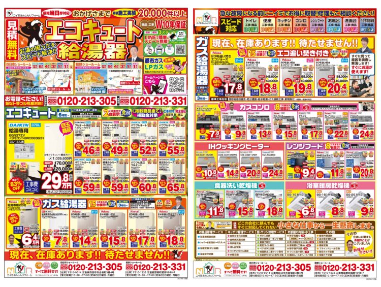 ガス、石油、エコキュートの各種給湯器をご提供しています。
