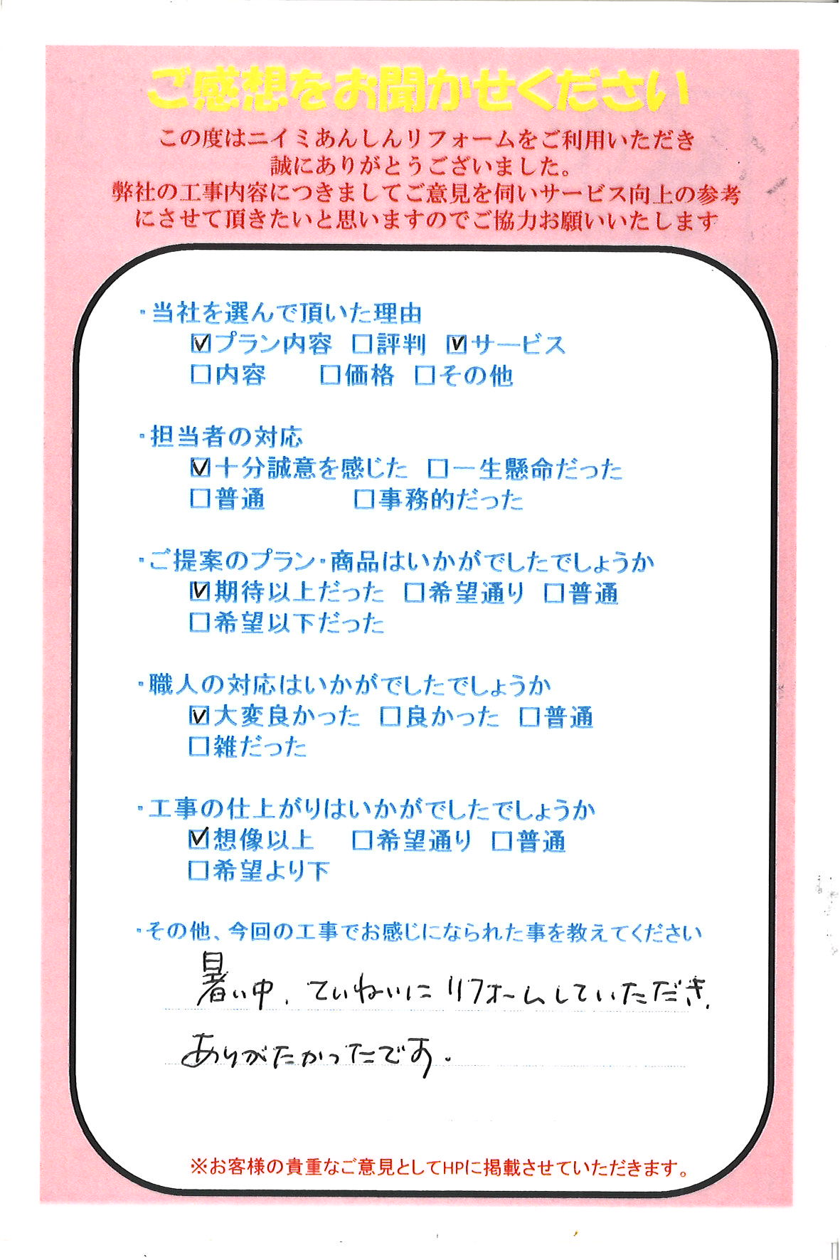 暑い中、ていねいにリフォームしていただき、ありがたかったです。