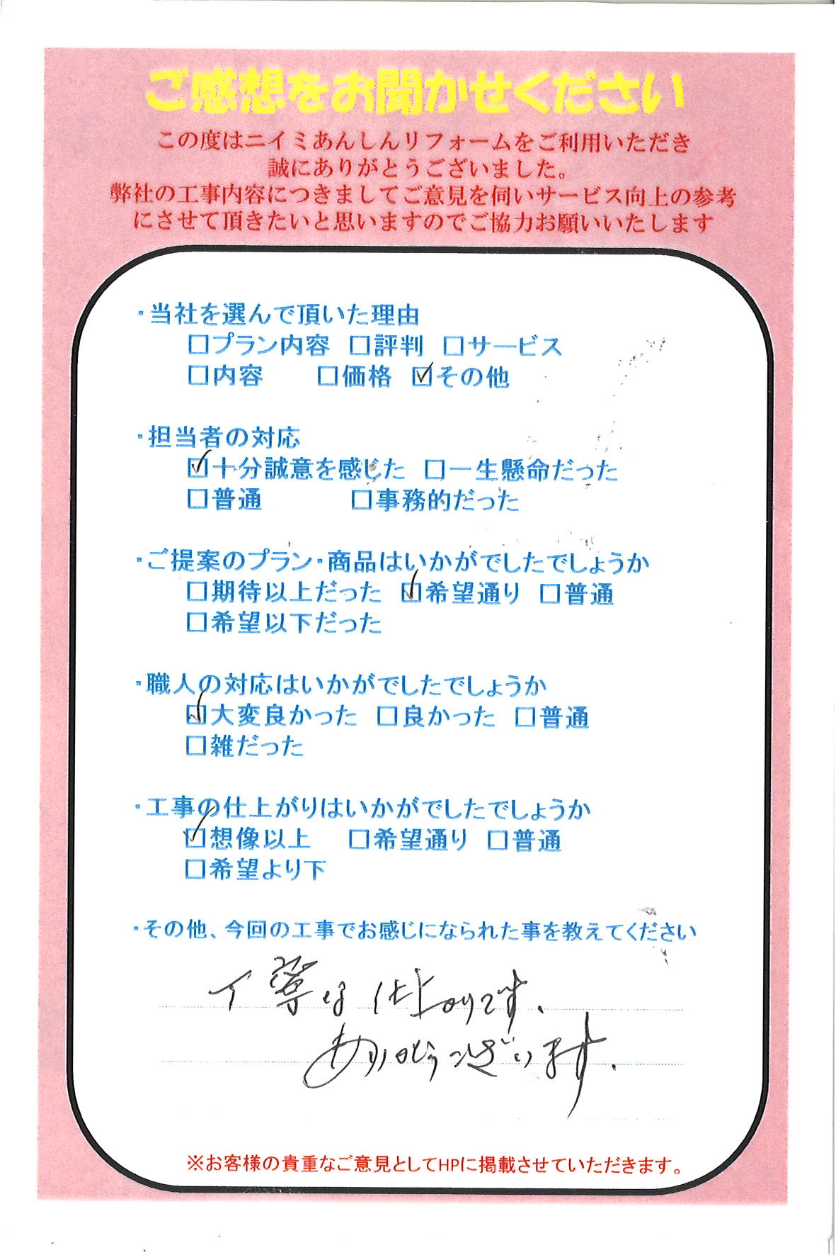 お客さまからのメッセージ